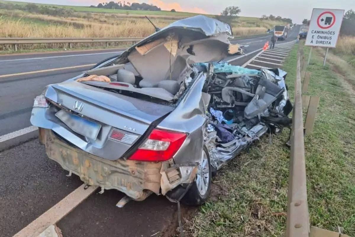 O carro colidiu na lateral direita de uma carreta da Bracell, que seguia no mesmo sentido, o veículo foi arremessado na pista contrária, e acabou atingido por outra carreta. Na sequência, parou transversalmente pela via, e foi atingido por ônibus de trabalhadores rurais. O casal não resistiu e morreu pelo local.