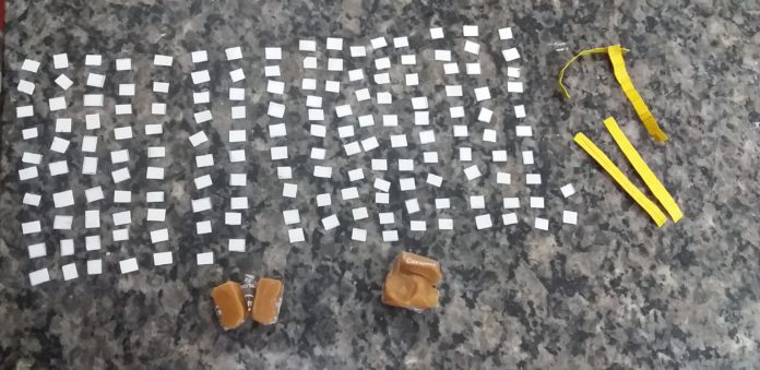 No último dia (05) foi registrada a apreensão de material ilícito na Penitenciária “Ozias Lúcio dos Santos” de Pacaembu. Durante procedimento de revista em encomenda destinada a um sentenciado, foram localizados 162 (cento e sessenta e dois) micropontos quadriculados de papel na cor branca e 04 (quatro) tiras de papel na cor amarela aparentando ser a droga sintética conhecida como K4, escondidas no interior de balas de caramelo. Diante dos fatos, foi instaurado Procedimento Disciplinar a fim de apurar eventual cumplicidade por parte do sentenciado o qual se encontra isolado no Pavilhão Disciplinar e a visitante suspensa do rol de visitas.