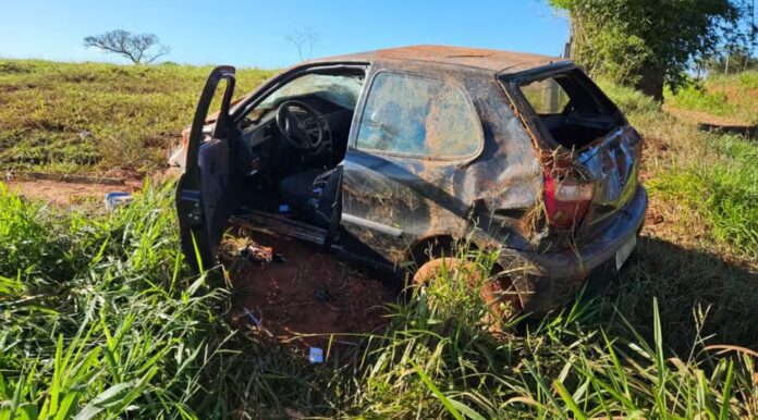 Capotamento de carro deixa motorista ferida em estrada vicinal, em Dracena