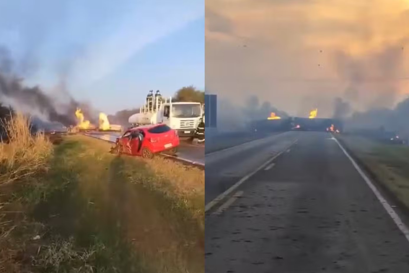 Segundo a Polícia Militar Rodoviária, o caminhão transportava álcool etílico e colidiu contra um veículo de passeio. Com o impacto, o motorista perdeu o controle da direção e o veículo tombou, incendiando-se logo em seguida.