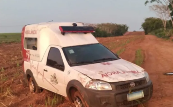 Ambulância capota após motorista tentar desviar de cavalo na pista