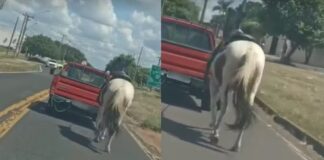 Homem que puxou cavalo amarrado a carro em movimento no interior...