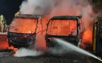 Incêndio destrói dois micro-ônibus em pátio de empresa de transporte em Adamantina