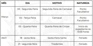 Prefeitura divulga calendário de feriados e pontos facultativos de 2025