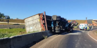 Carreta carregada com chumbo tomba no trecho urbano da rodovia Marechal...