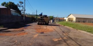 ASFALTO DO SANTA CLARA QUE ESTAVA BASTANTE DANIFICADO RECEBE PERFILAMENTO E...