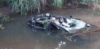 Mulher morre após carro cair de ponte em estrada vicinal, em...
