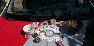 Dupla é flagrada com 33 sementes de maconha, cigarros e muda...