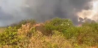 Oito caminhões-pipa são usados para combater incêndio em canavial entre Dracena...