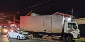 Motorista e passageiro ficam feridos após carro bater em caminhão estacionado...