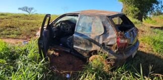 Capotamento de carro deixa motorista ferida em estrada vicinal, em Dracena