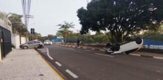 Carro capota no Parque do Povo após bater em veículo estacionado...