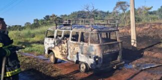 Veículo de feirantes pega fogo enquanto transitava em estrada vicinal, em...