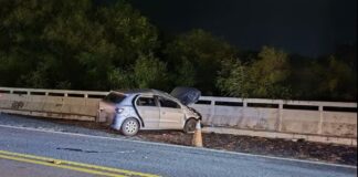 Carro capota após bater em barreira de concreto e quatro pessoas...