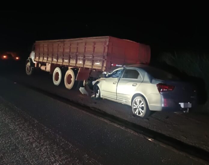 Ambos os veículos seguiam no mesmo sentido quando houve a colisão do carro na traseira do caminhão.