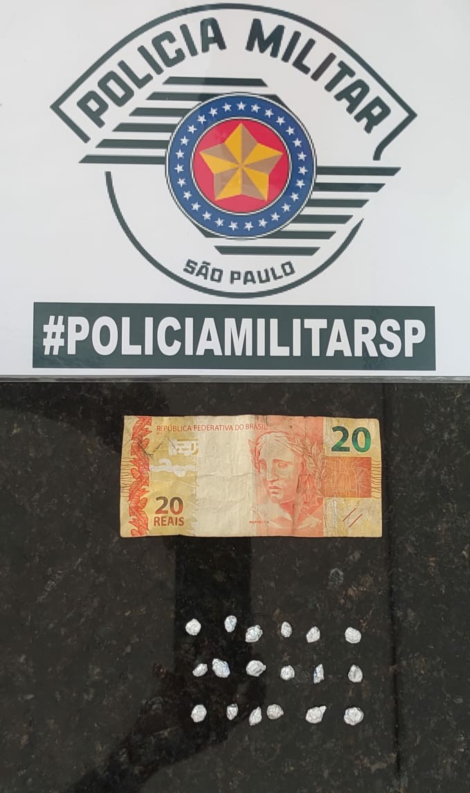 Na busca pessoal foram localizados no bolso de sua bermuda 18 porções de crack e R$ 20,00 indagado disse que venderia a R$ 10,00 cada porção.