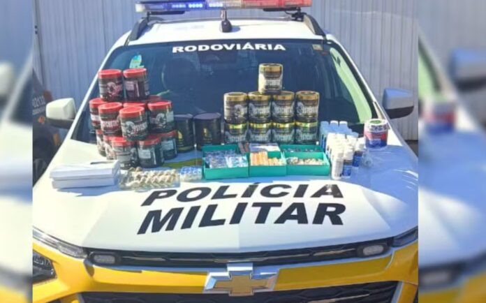 Dois homens que transportavam os medicamentos em um carro foram presos em flagrante pela Polícia Rodoviária.