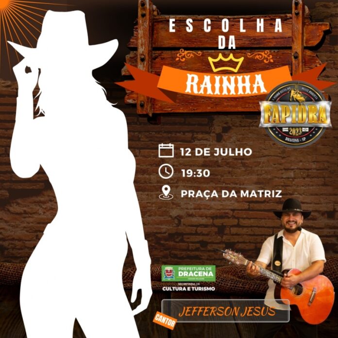 A Secretaria de Cultura e Turismo de Dracena promoverá, no dia 12/07 (quarta-feira), a escolha da Rainha da Fapidra 2023. O evento acontecerá a partir das 19h30 na Praça da Matriz e será aberto ao público.