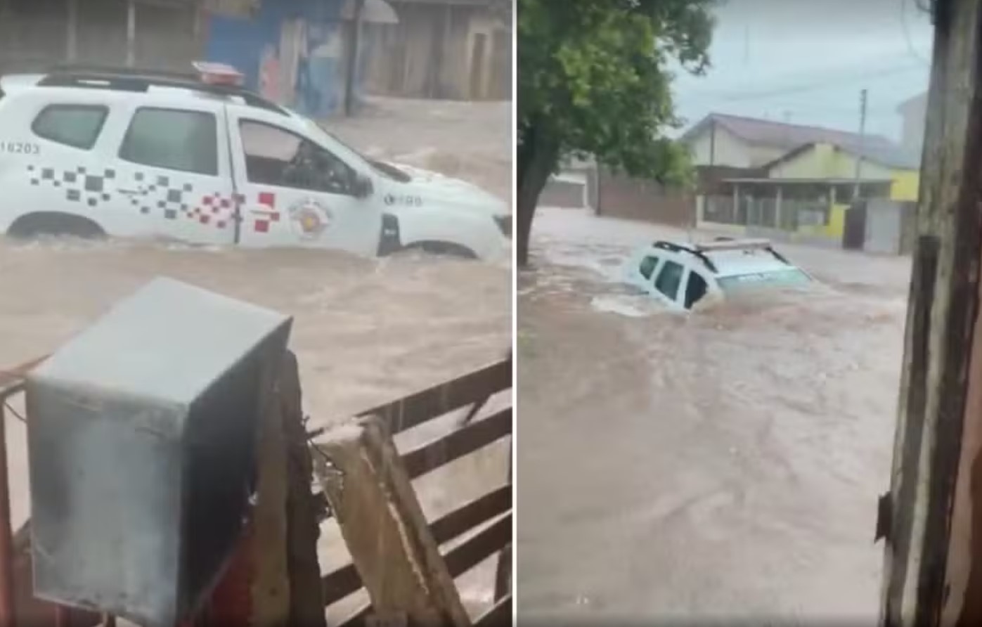 Uma forte chuva atingiu a região oeste paulista e causou pontos de alagamento nesta terça-feira (24). Em Martinópolis (SP), um vídeo gravado por moradores mostra a força da água, que arrastou uma viatura da Polícia Militar. Devido à enxurrada, um idoso de 66 anos está desaparecido.