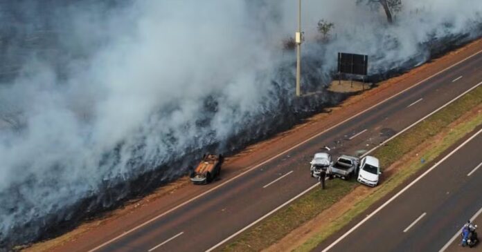 A fumaça gerada pelo incêndio cobriu a pista e provocou um engavetamento envolvendo quatro veículos. Uma pessoa teve ferimentos leves e recebeu atendimento no local. A pista precisou ser parcialmente interditada, mas já foi liberada.