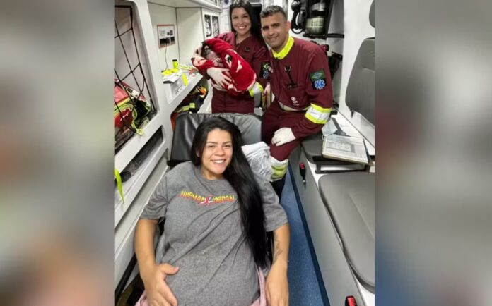 As contrações ficaram mais fortes e o motorista parou o ônibus em um posto da rodovia. As passageiras que estavam no veículo ajudaram a acalmá-la e chamaram o socorro. A bolsa estourou pouco depois. Quando a equipe da concessionária chegou, o bebê já estava “coroando”, o que indicava que o parto teria de ser feito ali mesmo.