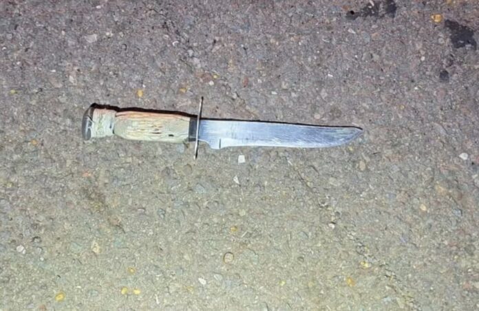 Ainda dentro da viatura, os policiais solicitaram que o suspeito levantasse a camiseta para verificar se escondia algum objeto. Nesse momento, foi constatado que ele portava uma faca na cintura.