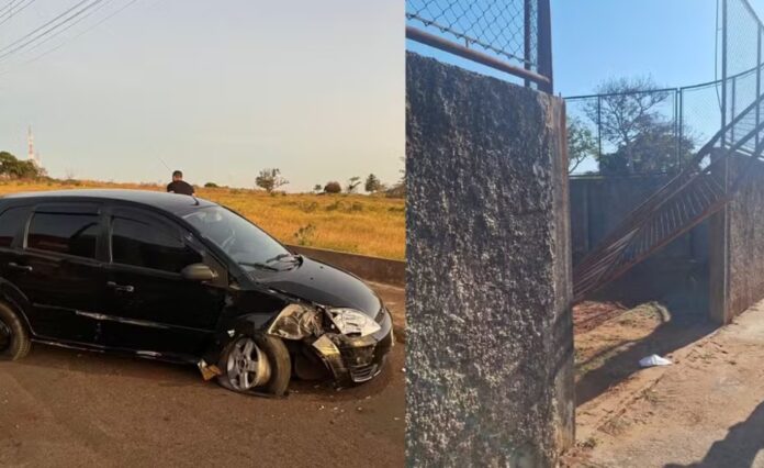 Homem bate carro contra portão de escola em São Manuel e é preso por dirigir embriagado