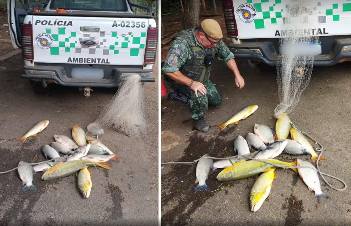 Além disso, a polícia apreendeu 24,5 kg de pescado que ele havia capturado momentos antes. Foi elaborado um Auto de Infração Ambiental.