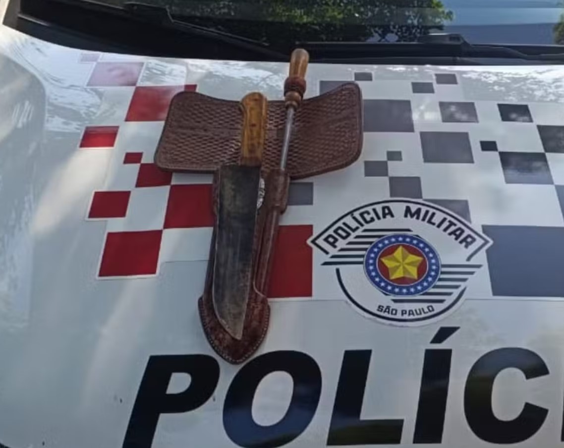 Ao ser questionado, o homem informou o local onde teria escondido a faca, que foi apreendida junto com um amolador.