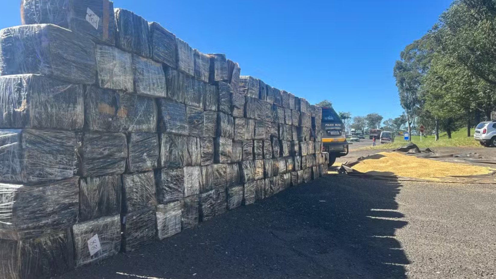 Conforme a Polícia Militar Rodoviária, a droga estava escondida em meio a uma carga de soja que estava sendo transportada em uma carreta.