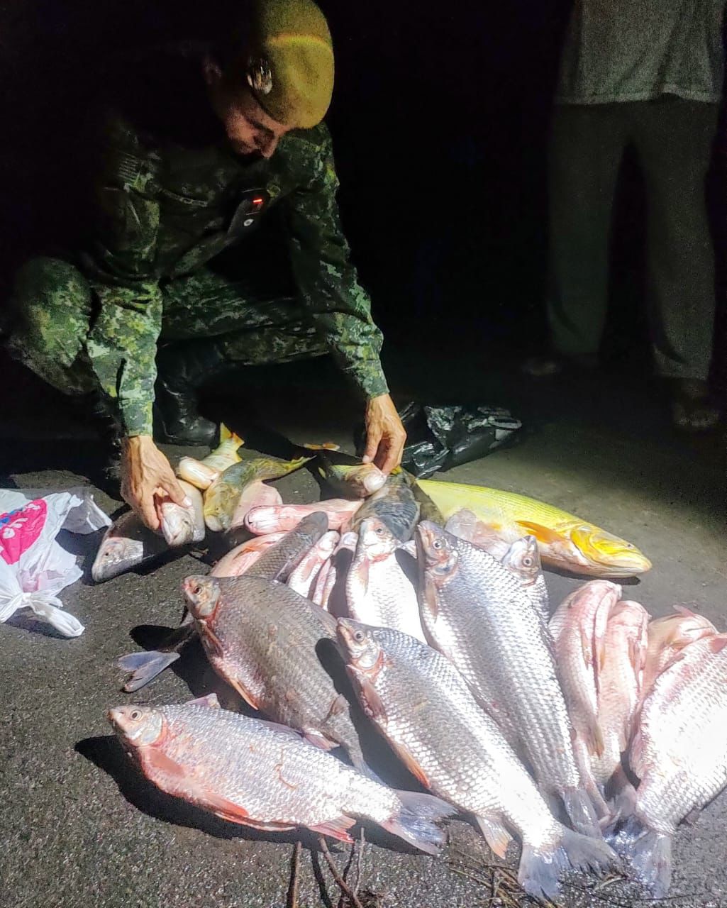 HOMENS SÃO FLAGRADOS COM PEIXES NATIVOS CAPTURADOS NO RIO AGUAPEÍ EM LUCÉLIA