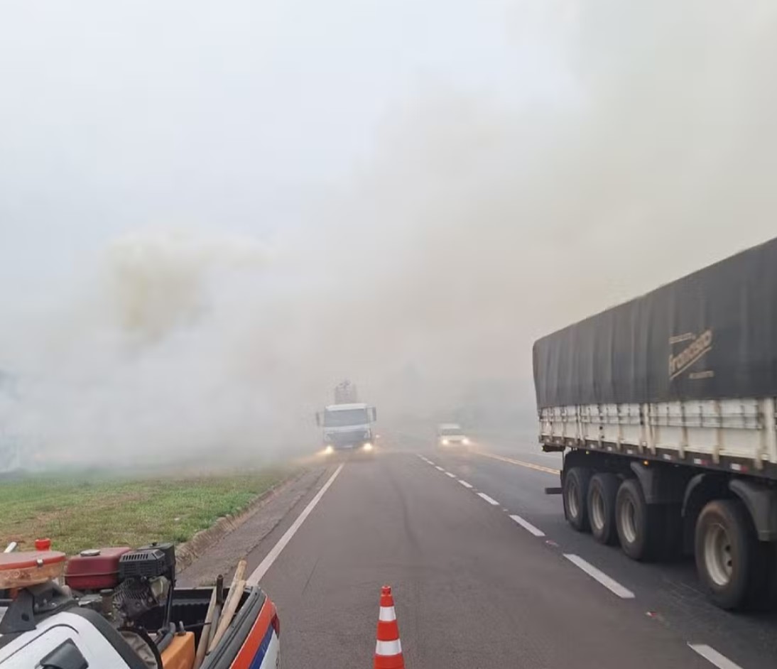 De acordo com a Coordenadoria de Proteção e Defesa Civil, a ocorrência foi registrada por volta das 17h na altura do km 408, próximo ao trevo de acesso à Vila Escócia.