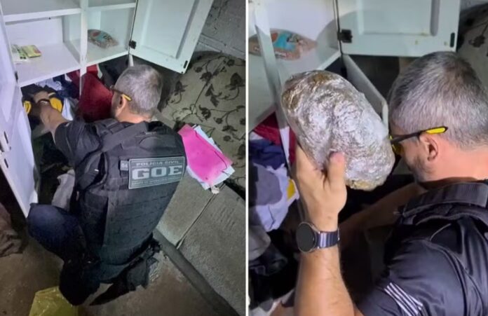 Um homem de 25 anos, também investigado, fugiu após a descoberta de uma quantidade significativa de drogas em sua residência. Ele foi localizado em um sítio depois de buscas e preso em flagrante por tráfico de drogas, acusado de armazenar entorpecentes para venda.