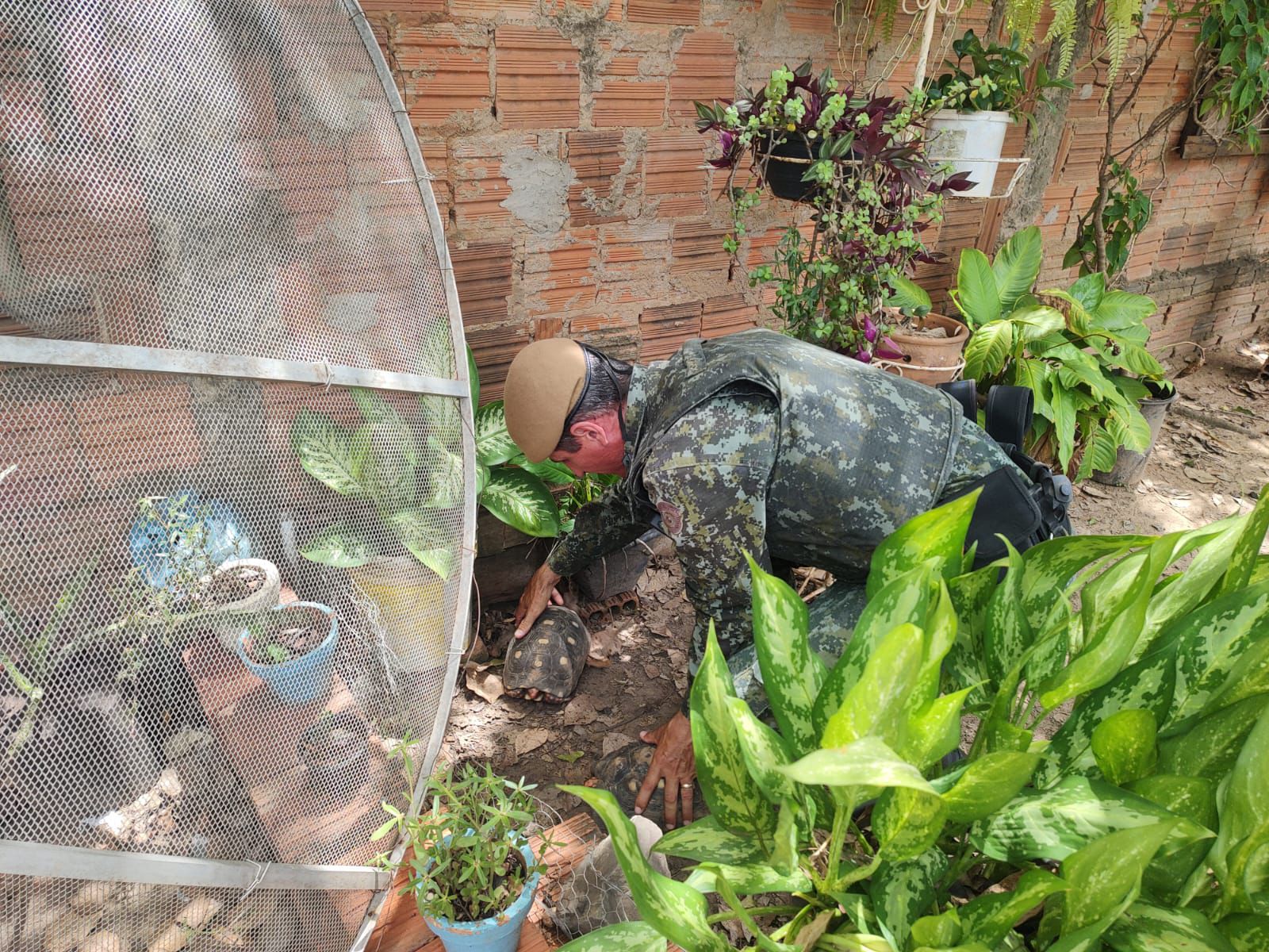 No local foi constatado pelos policiais que o morador (um homem de 50 anos) mantinha em cativeiro seis animais silvestres da espécie jabuti, sendo lavrado em seu desfavor um Auto de Infração Ambiental no valor de R$ 3.000,00 por manter em cativeiro animais da fauna silvestre sem autorização, com base no artigo 25, parágrafo 3°, inciso III Resolução SIMA nº 05/21.