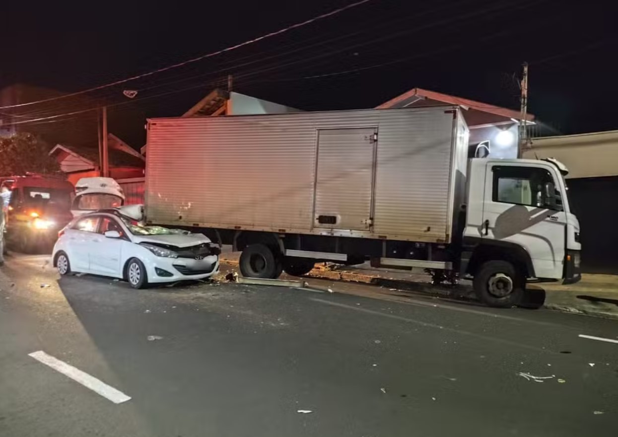 De acordo com o corpo de bombeiros, o carro estava a 70 km/h quando bateu no caminhão na Rua Whasington Luís, no bairro Palmital. O motorista apresentava sinais de traumatismo craniano, ferimentos e hemorragia na cabeça.