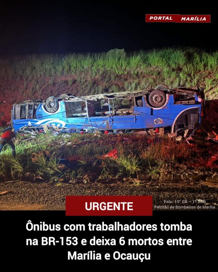 Um ônibus que transportava trabalhadores do Maranhão para Santa Catarina tombou na Rodovia Transbrasiliana (BR-153), entre Marília e Ocauçu, na madrugada desta segunda-feira (16). Ao todo, 51 pessoas estavam no veículo: seis morreram e 45 ficaram feridas.