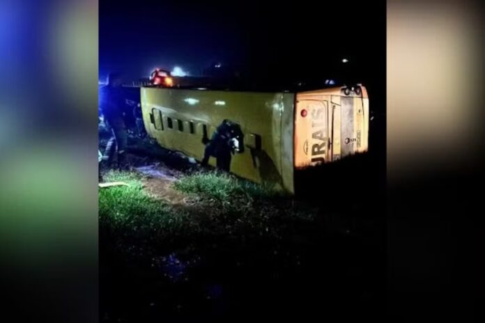 Acidente com ônibus que transportava trabalhadores rurais foi registrado nesta segunda-feira (9) — Foto: Reprodução/Pontal News