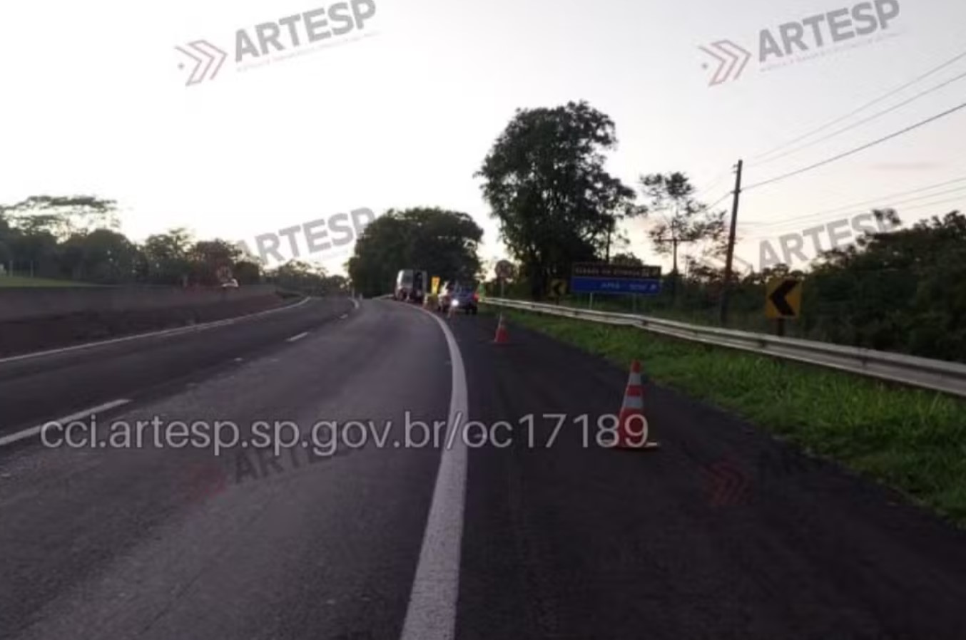 Às 7h40 o trecho seguia parcialmente interditado, com bloqueio na faixa 2 e no acostamento, enquanto a Polícia Militar Rodoviária, a perícia e a funerária realizavam os atendimentos e procedimentos de praxe.