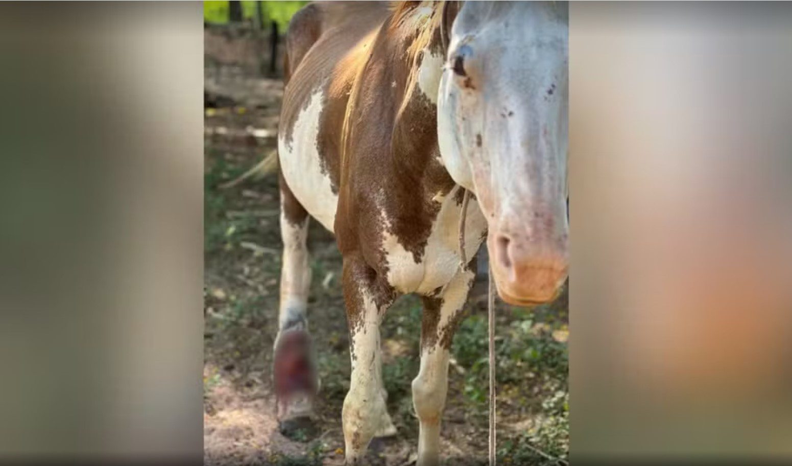 A ação foi realizada pela Polícia Militar Ambiental após o recebimento de uma denúncia. No local, os policiais encontraram um cavalo da raça paint horse com ferimentos graves.