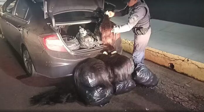 Durante a vistoria, os policiais encontraram oito pacotes de cabelo humano no porta-malas e atrás dos bancos dianteiros. A mercadoria foi avaliada em mais de R$ 356 mil.