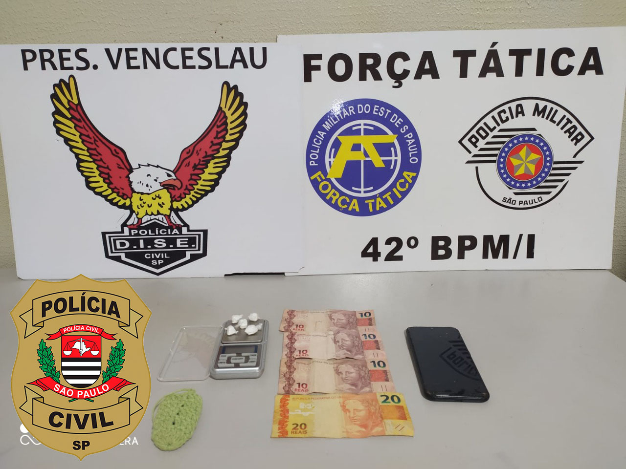 Os alvos foram residências onde as investigações apontaram serem pontos de venda de drogas. Em uma residência na Av. Tiradentes os policiais encontraram 05 (cinco) porções de cocaína, 01 (uma) balança de precisão, dinheiro e aparelho celular. Pela prática do tráfico de drogas um homem de 38 anos foi preso em flagrante, ele assumiu a propriedade das drogas e demais objetos relacionados ao tráfico. Os entorpecentes e demais objetos foram apreendidos, o homem após passar por audiência de custódia, será encaminhado ao CDP de Caiuá, onde permanecerá a disposição da Justiça.