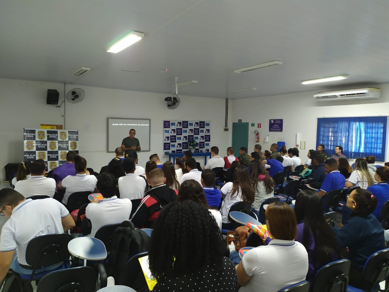 A Polícia Civil, por intermédio da Delegacia Seccional de Polícia de Dracena, realizou na quarta-feira (22), palestra sobre prevenção ao uso de drogas, no Auditório da Instituição Novo Amanhecer “Guiomar C. A. da Silva” – INA, para cerca de 50 jovens aprendizes, com idade de 18 a 24 anos. A ação de orientação e conscientização foi em alusão ao “Dia Internacional de Combate as Drogas”, que é comemorado anualmente no dia 26 de junho.