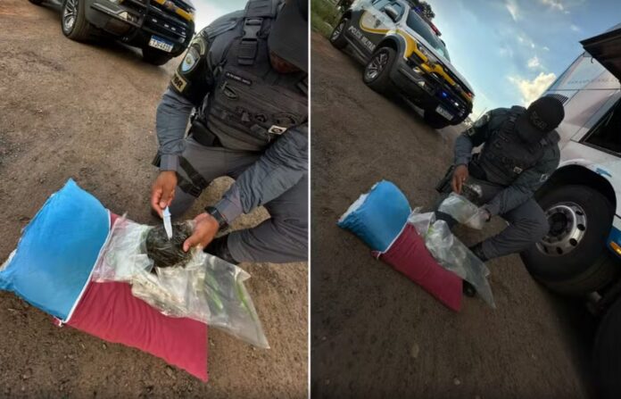 Parte do haxixe apreendido foi encontrado dentro de um travesseiro — Foto: Polícia Rodoviária/Divulgação