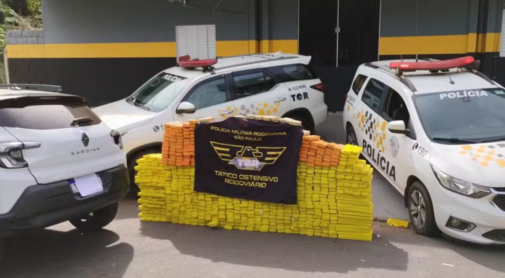Durante a vistoria, os policiais encontraram 912 tabletes de maconha distribuídos no porta-malas e banco traseiro do veículo. A droga totalizou 931,3 kg.
