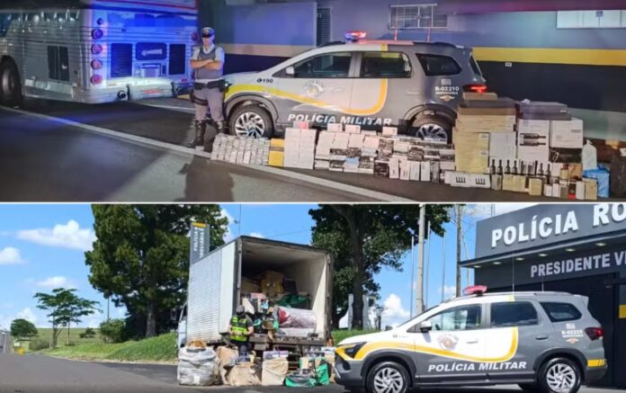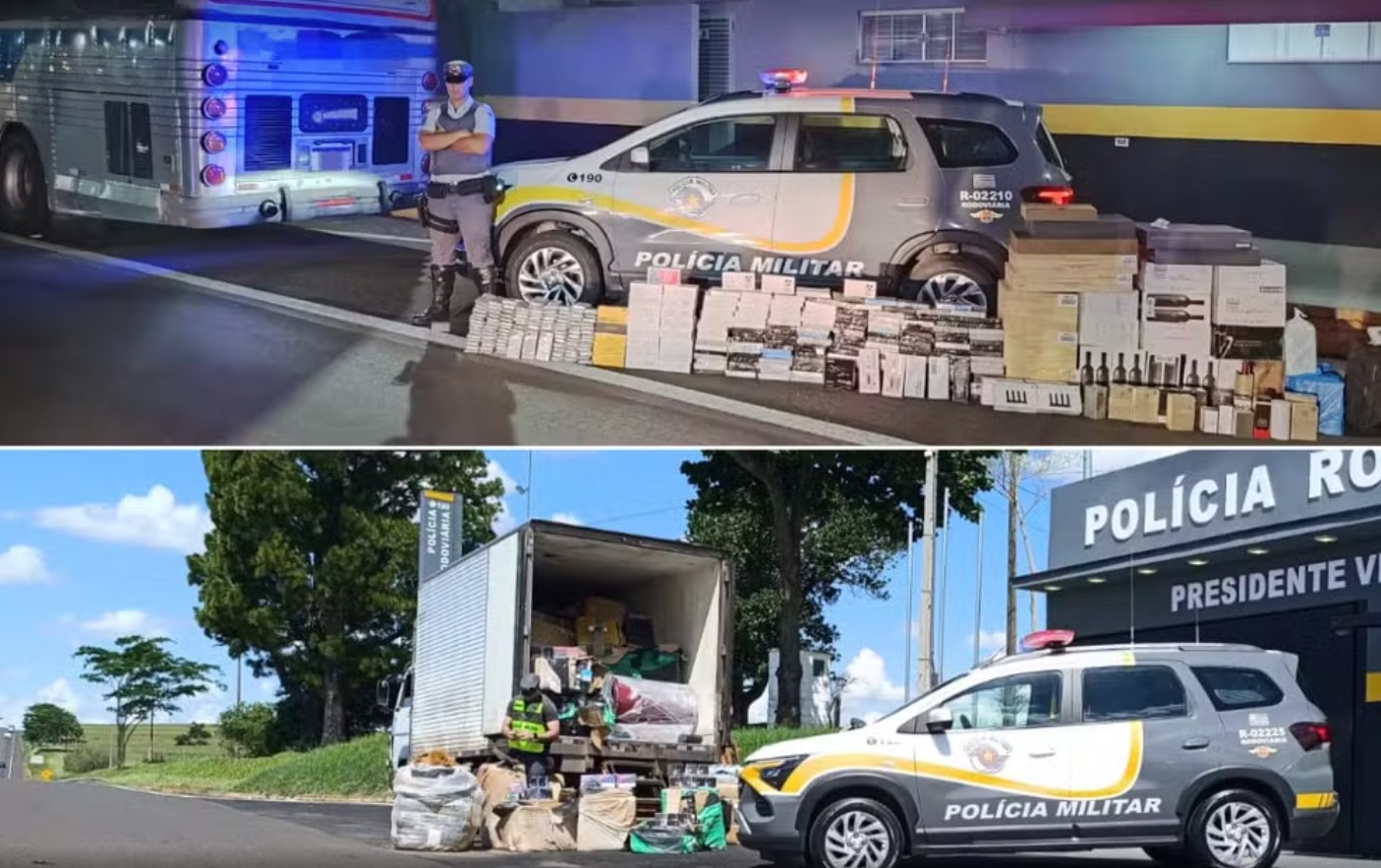 Quase R$ 4 milhões em mercadorias sem nota fiscal foram apreendidos em duas ocorrências em rodovias do oeste paulista, em um intervalo de cerca de cinco horas, neste domingo (5). As abordagens foram realizadas pela Polícia Militar Rodoviária em Presidente Venceslau e em Martinópolis.