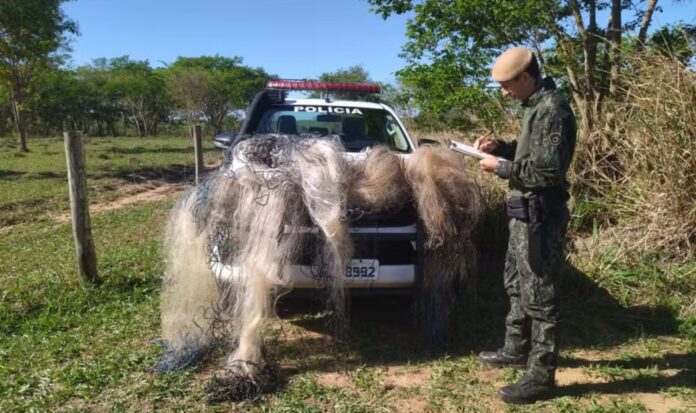 As nove redes, com malhas de 90 milímetros e tamanhos variando entre 5 e 50 metros, foram apreendidas e encaminhadas à sede da Polícia Militar Ambiental da cidade.