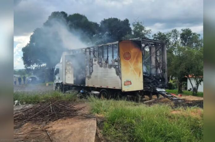 Caso aconteceu em Regente Feijó (SP), nesta segunda-feira (6). De acordo com a Defesa Civil, fagulhas geradas durante o uso de uma serra elétrica atingiram o veículo e deram início ao incêndio.