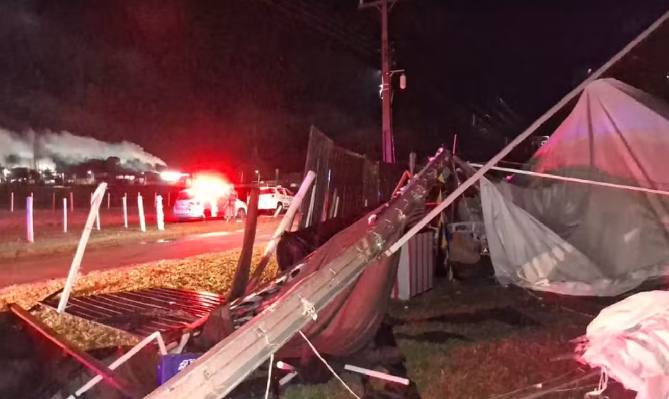 Temporal com ventos de 95 km/h derruba estrutura de festa universitária em Regente Feijó; uma pessoa morreu