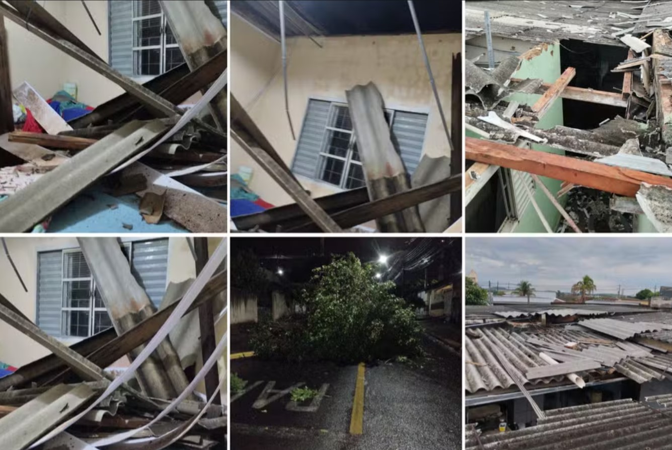 Na Rua Rodolfo Zarros, duas residências tiveram parte do telhado danificado. Em uma delas, onde mora uma idosa de 68 anos, parte da estrutura cedeu logo após ela se levantar da cama ao perceber o aumento da chuva. Ninguém ficou ferido.